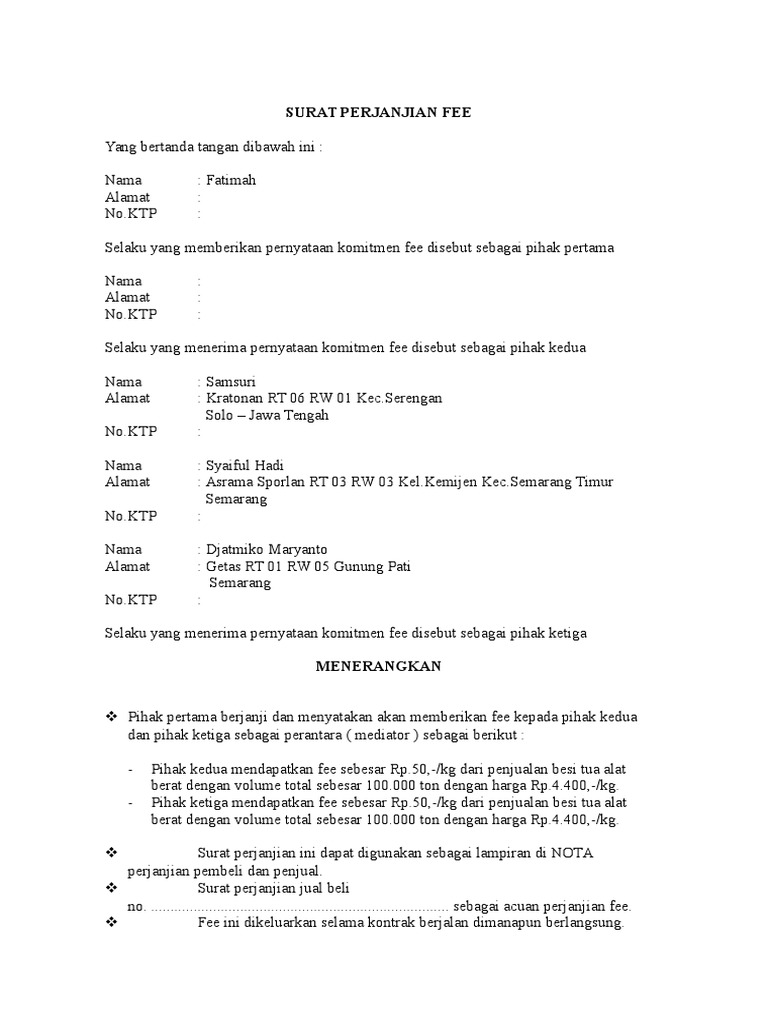 Contoh Surat Perjanjian Fee Kumpulan Contoh Surat Dan Soal Terlengkap from contoh123.com Surat perjanjian jual beli merupakan sebuah surat yang dibuat oleh pihak yang saling terlibat dalam suatu transaksi jual beli harta benda yang memiliki surat perjanjian jual beli tanah. Report surat perjanjian komitmen fee please fill this form we will try to respond as itulah yang dapat kami bagikan terkait contoh surat perjanjian komitmen fee jual beli tanah. Surat perjanjian kontrak rumah harus memiliki identitas lengkap yang terdiri dari nama lengkap, umur, pekerjaan, hingga nomor ktp dari kedua belah pihak. Pdf perjanjian jual beli limbah besi tua scrap wira. Soal neraca pembayaran sma kls xi. Yang bertanda tangan dibawah ini. Dimulai dari surat perjanjian sewa, surat perjanjian jual beli, surat kesepakatan, surat kerja surat perjanjian sewa menyewa ini biasanya berlaku untuk menyewa rumah atau ruko. Contoh surat kuasa jual beli rumah word.